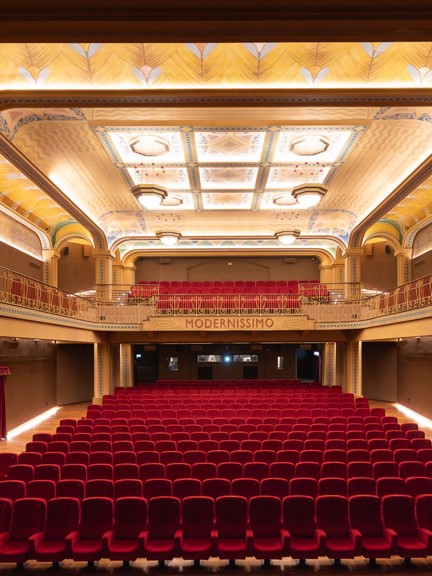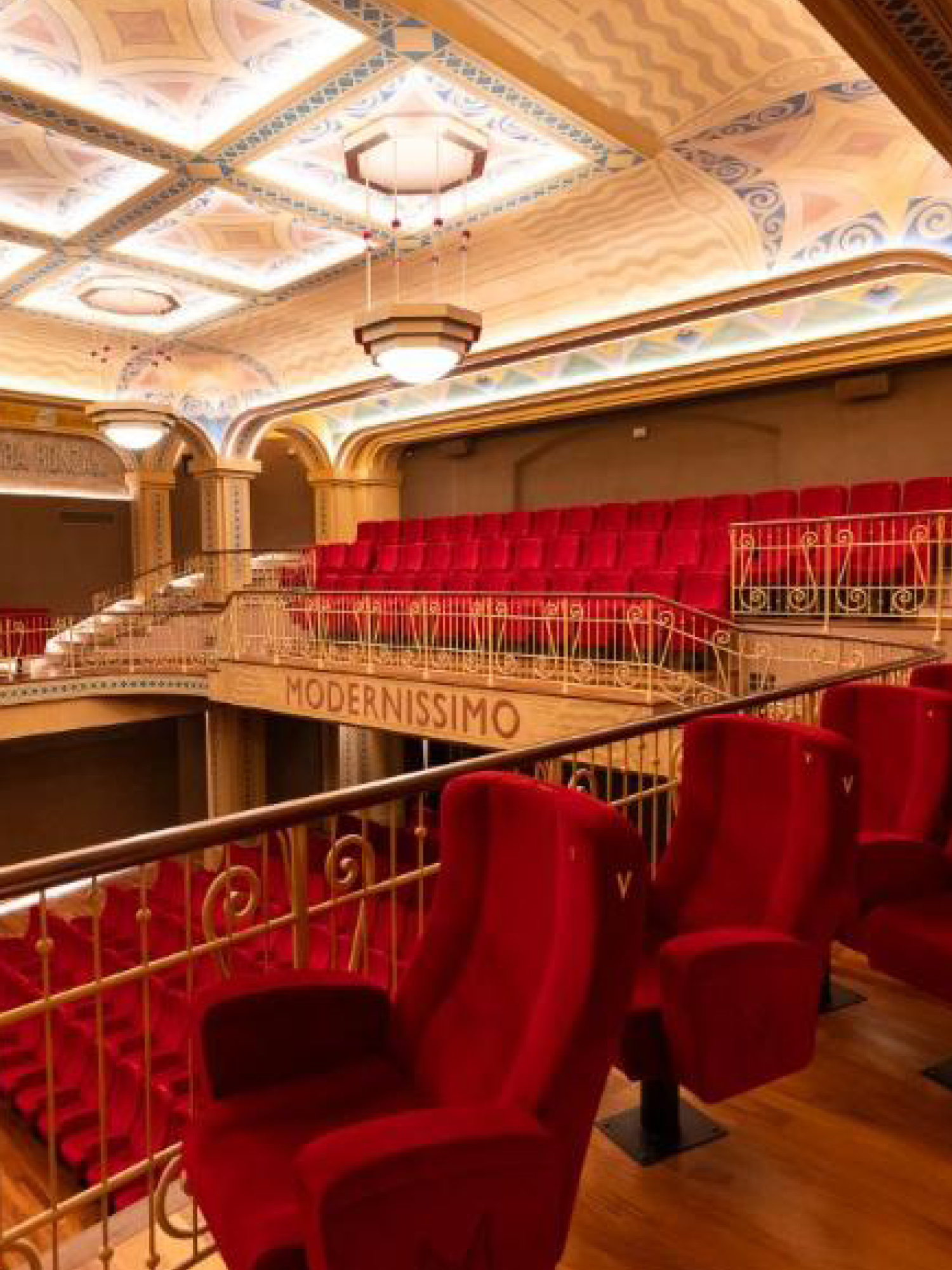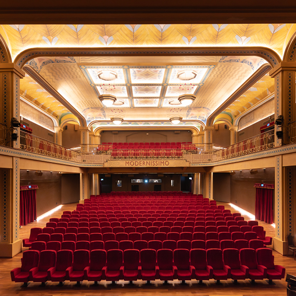 L’appuntamento si svolge al Cinema Modernissimo, uno dei luoghi più suggestivi e ricchi di storia della città di Bologna. Inaugurato nel 1915 all’interno di Palazzo Ronzani, il Modernissimo nacque come sala elegante e innovativa, simbolo della modernità cittadina. Dopo decenni di attività – tra proiezioni d’autore, rassegne e trasformazioni – chiuse nel 2007, per poi rinascere nel 2023 grazie al progetto di restauro promosso dalla Fondazione Cineteca di Bologna.