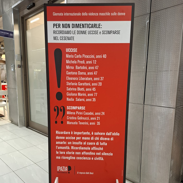 Verranno esposte 12 sagome di donna, rosse con velo nero, a ricordo delle 12 donne morte o scomparse nel Cesenate.